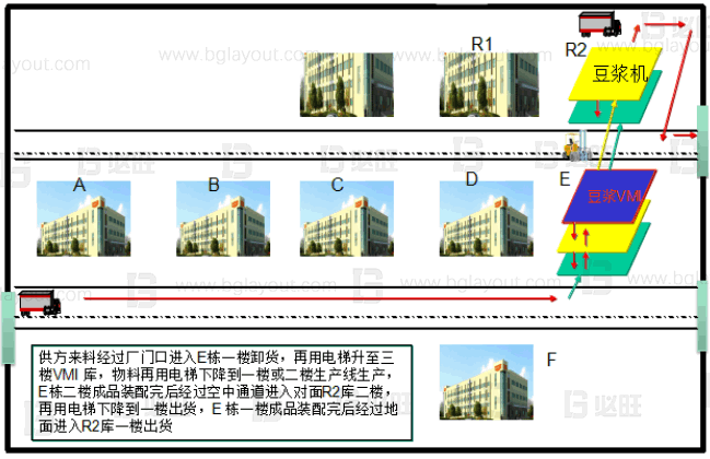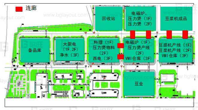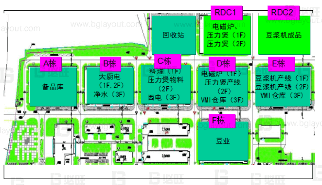 本规划项目涉及对九阳工厂a、b、c、d、e、f栋进行整体规划,规划内容包含对厂区进行智能精益布局、对物流及辅助设施规划、目视化管理等服务内容, 通过精益设施规划设计,提高物品流动速度,降低存货损失,提高工厂对顾客的响应速度,提高资金的支出的投资收益,支持企业战略目标的实现。