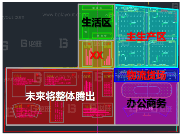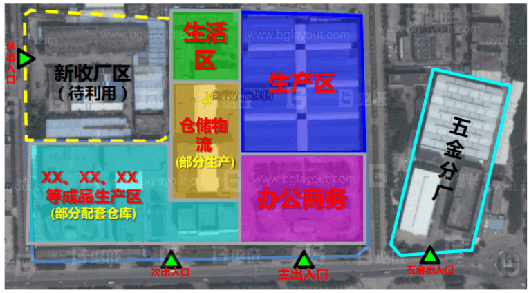 本规划项目涉及对厂房布局整体规划,规划内容包含对工厂整体功能模块规划、仓库规划、物流及辅助设施规划等服务内容,满足未来多元化及高产值发展的需求。