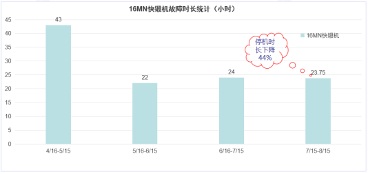 金航钛业2023年关键设备快锻机因设备故障停机4个月,2024年导入tpm活动之后,每月的停机时长逐步缩减。