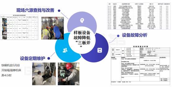 为了降低故障。博革咨询设计了降低故障三板斧-六源查找与改善、定期维护保养、故障分析与改善,通过六源查找与改善活动一共发现并改善了40件,制订2台样板机设备维护保养计划,设备故障5why分析完成10件,并对所有分析与改善实施进行了追踪。