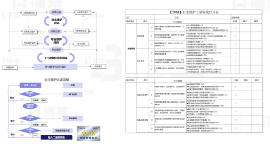 第四步完善自主维护认证体系,搭建可持续维持的自主维护现场。通过现场认证,员工能清晰感知什么才是做到位的,哪些地方可以再进一步优化,评分不是目的,完善自我认证体系才是最终目的。