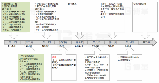 因业务拓展需要,将原有的二厂和三厂进行合并,并承租一个更大的园区,由博革集团旗下上海必旺智能科技承接了此次园区的精益布局业务。