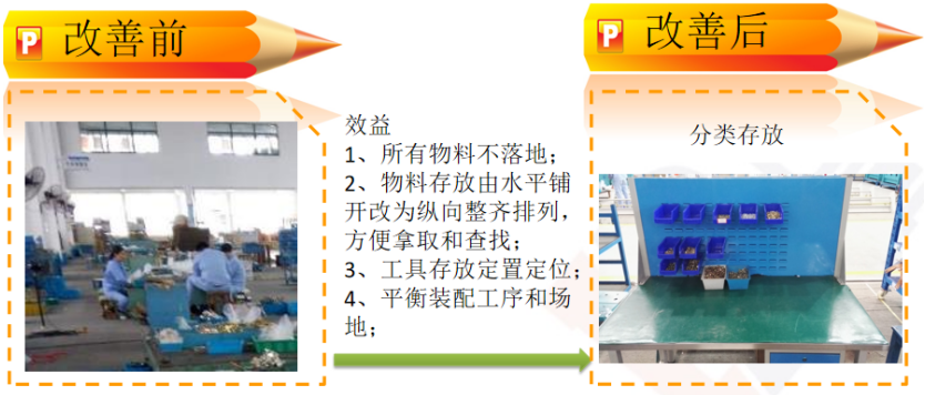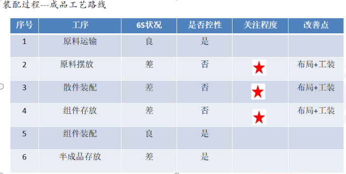 (2)装配桌凌乱:一个装配桌上放有多种组件的零部件,且没有区域划分零部