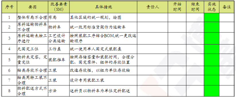 ●动作浪费:物料没有放在离装配员最近的位置,装配过程中需多次做幅度较大的动作;
