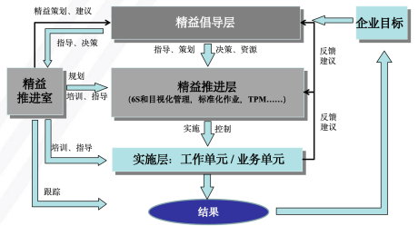 1)精益的有效开展需要建立对结果负责的精益组织,根据企业目标,精益推进工作室,协助精益倡导层,推进层和实施层,分解项目目标,制定项目计划,共同达成项目目标。