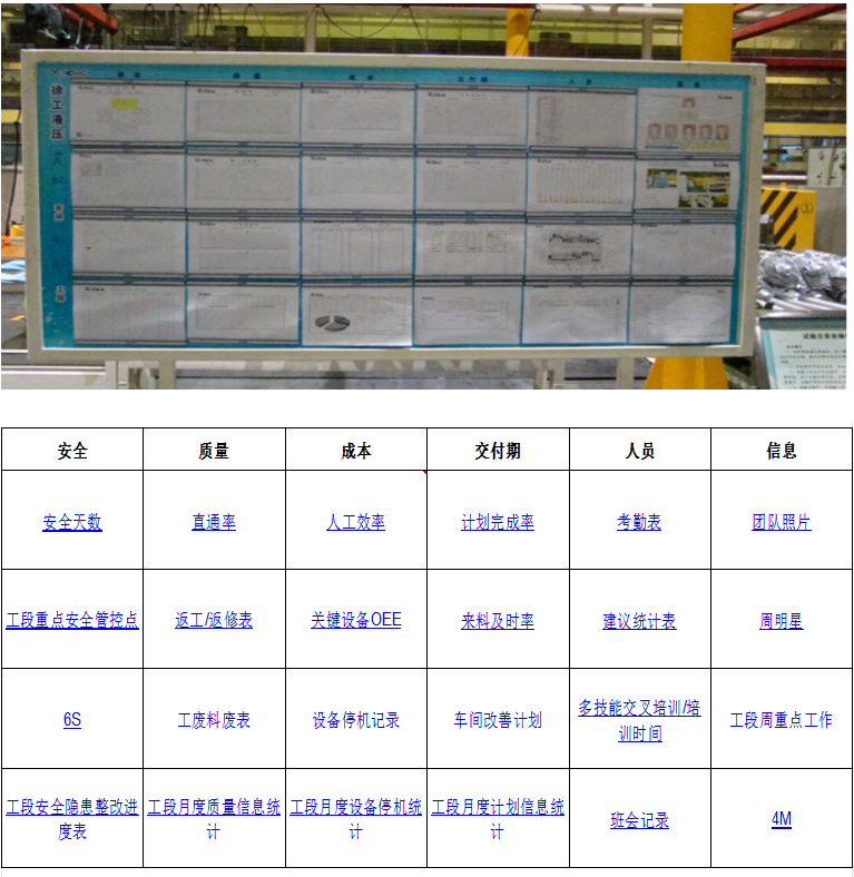 9)设置pqcdsm6个唯独业绩展板,实现可视化管理。