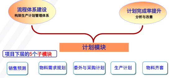 3)生产计划和物流改进:通过“销售预测”“物料需求规划”“委外与采购计划”“生产计划”“物料齐套”等5个模块,构建公司计划管理流程体系,实现计划完成率的提升。