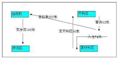 4.三台油压机与开料机、冲压线距离太长,约600米。