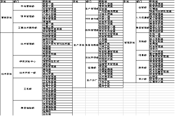 1.4 关键部门的组织职责梳理,装备制造企业通常分为营销,技术,生产,管理四个系统,重新梳理各部门组织职责。