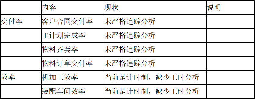 (7)技术准备计划:技术部门有专用系统管控项目进度,但该系统无法批量下载数据,实际缺少技术准备计划的及时率考核,没有技术准备计划的经验工时和期量