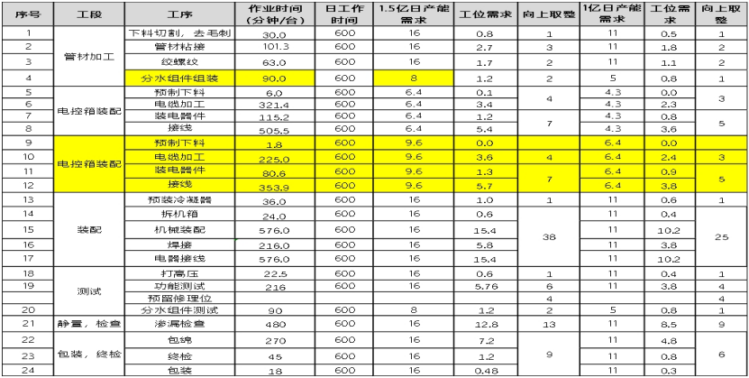 u 5000台/年,需要生产人力104人,3300台/年,需要生产人力73人。